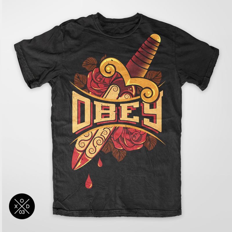 Obey graphic design template in vector format, featuring detailed colourful logo now available for Adobe Illustrator and can be used for digital printing and screenprinting .