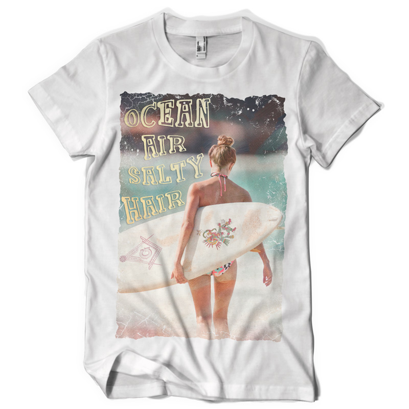"ocean air" Artwork created in Adobe Photoshop. The file available for the client upon purchase and download are 1 layered file in TIFF (with transparency) format designed for DIRECT TO GARMENT printing. Also available upon request is 1 file in PDF format, layered, designed for the SCREEN PRINTING.