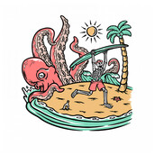 octopus attack skull on beach