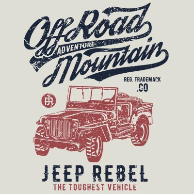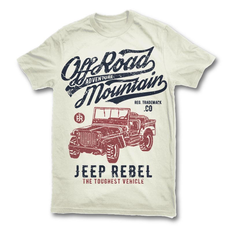 Off Road Jeep Tshirt Design Template based on vector files , such as AI and CDR also with PSD separated Layers file, the design has 2 color print, it can be used for digital printing and screen printing.