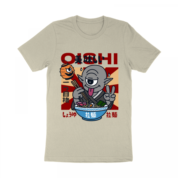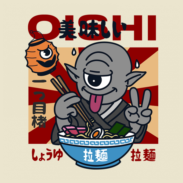 This design “ oishi” is made in Adobe Ilustrator is ready for print.