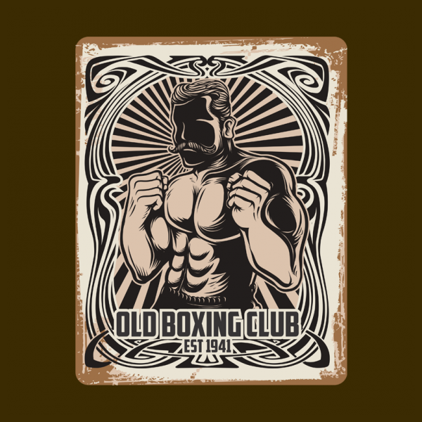OLD BOXING CLUB VINTAGE SIGNS T-Shirt was created with Corel Draw and Adobe illustrator, two color print, CDR,AI,PNG,EPS Can be used for digital printing and screen printing