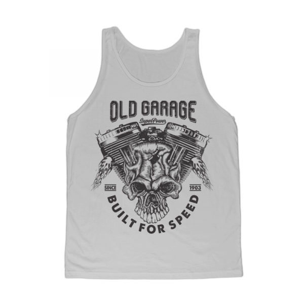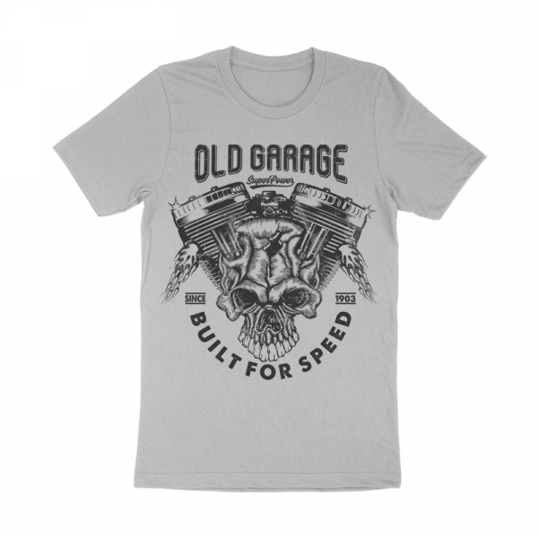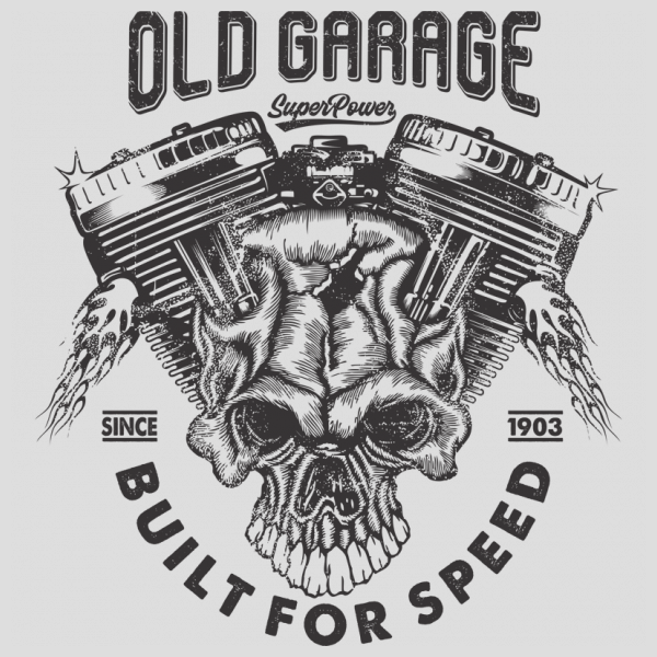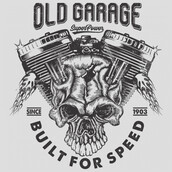 Old garage with machine and skull illustration T-Shirt was created with Corel Draw and Adobe illustrator, one color print, CDR,AI,PNG,EPS Can be used for digital printing and screen printing