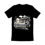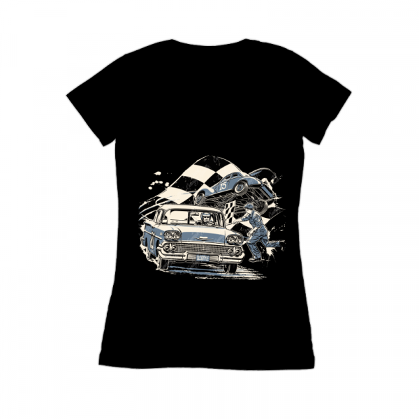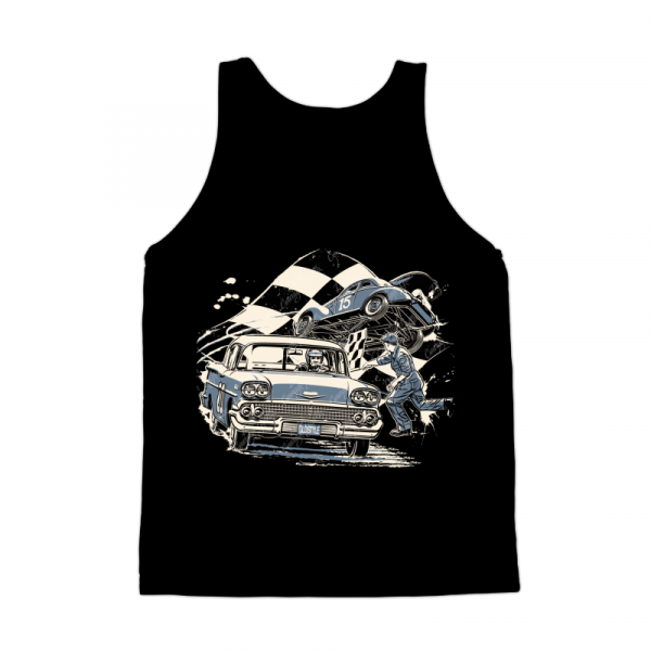 The Last American Hero - old style stock car racing scene with checker flag man - vector illustration