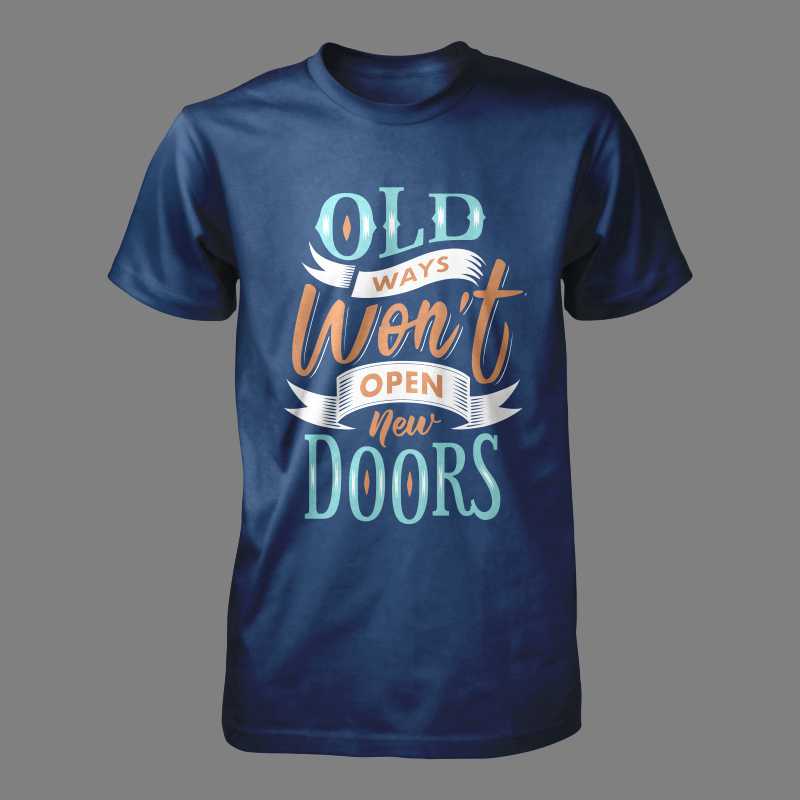 "Old Ways Won't Open New Doors" Typography style t-shirt design.