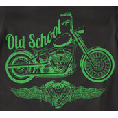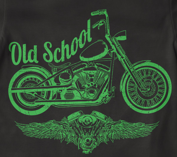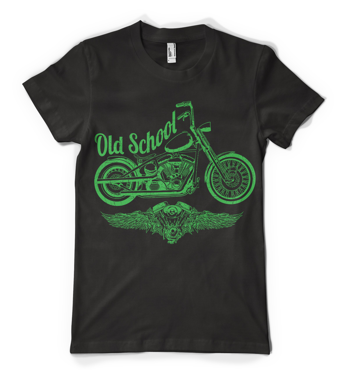 Old t-shirt design features a detailed screen print of green motorcycle now available for Adobe Illustrator, Adobe Photoshop and Corel Draw and can be used for digital printing and screenprinting .