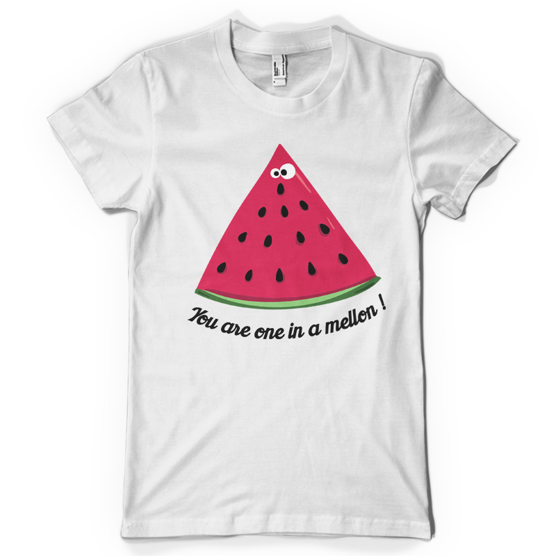 One in a mellon is an illustration made in Adobe Illustrator,featuring a slice of a juicy watermelon with a funny message.It can be used on digital printing,screen printing and T-shirt design and it is available in PSD and EPS format.