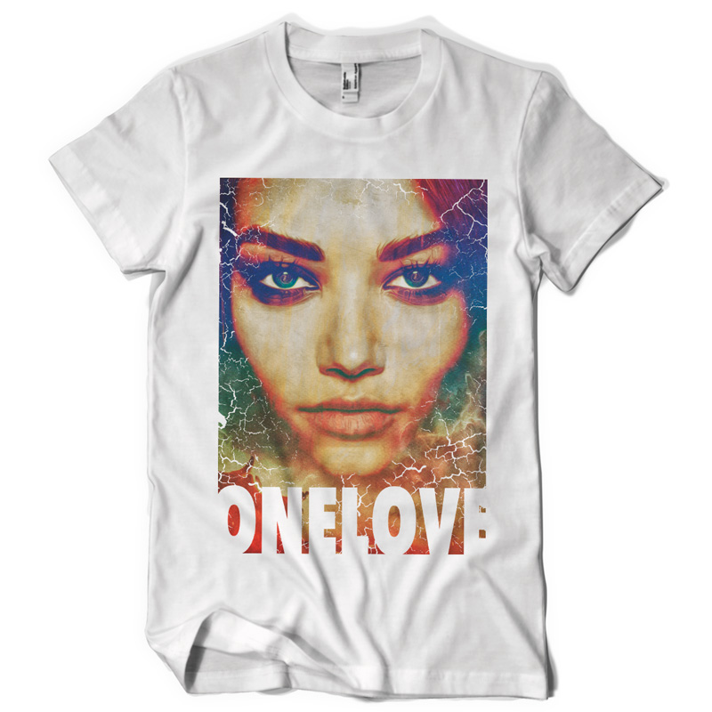 "one love" Artwork created in Adobe Photoshop. The file available for the client upon purchase and download are 1 layered file in TIFF (with transparency) format designed for DIRECT TO GARMENT printing. Also available upon request is 1 file in PDF format, layered, designed for the SCREEN PRINTING.