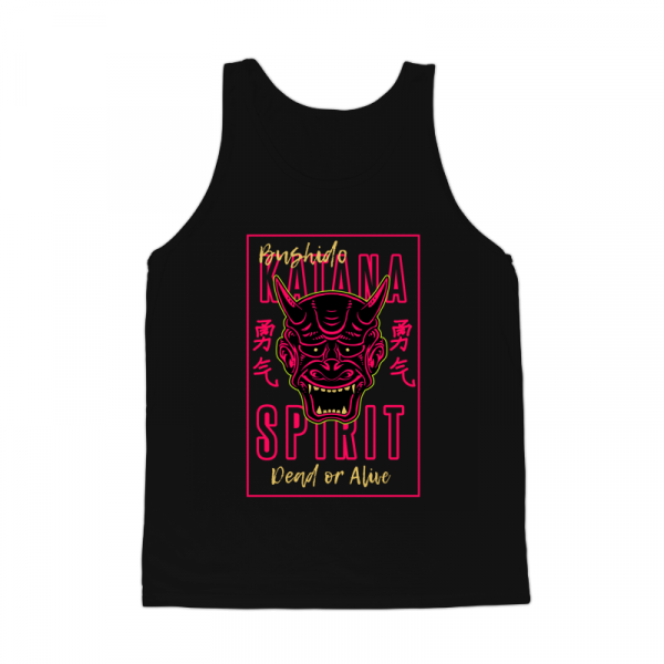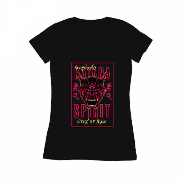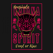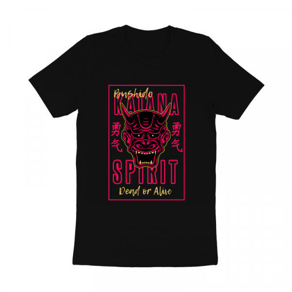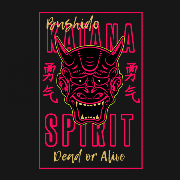 Vector illustration of japan oni demon ninja mask. The traditional japan kanji word means courage. Ready to print on t-shirt.