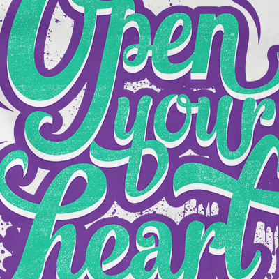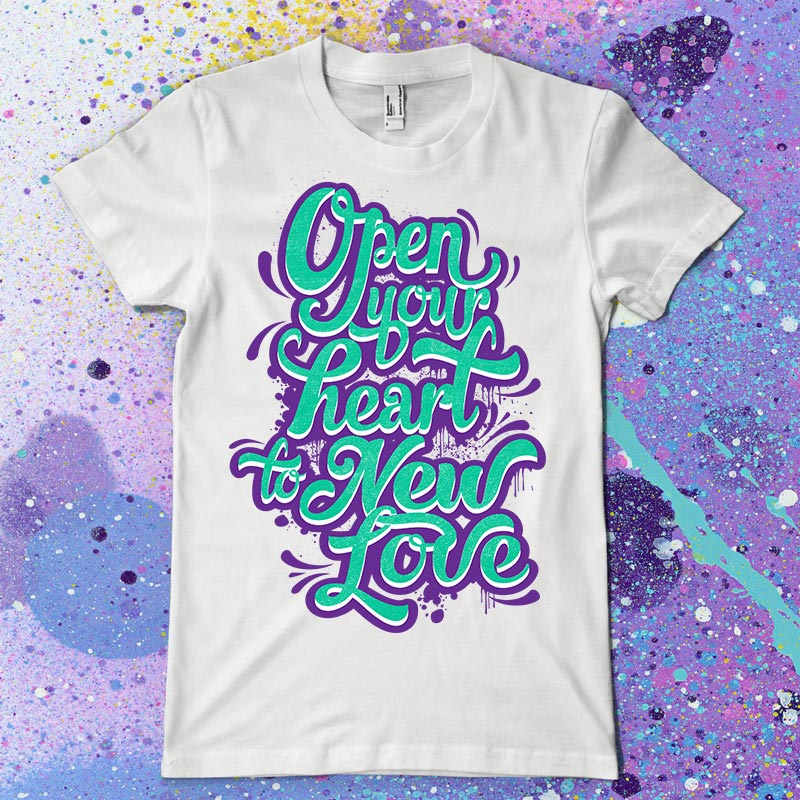 Open Your Heart t-shirt design features a typography detailed screen print now available for Adobe Illustrator and Corel Draw and can be used for digital printing and screenprinting.