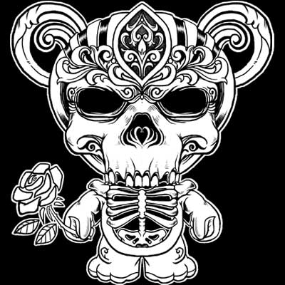 ''ornate skull doll"Illustration for the fans of skulls,with some explore ornament, really cute design...maybe for a club of skull doll...made with vector drawing looking and tattoo style.black and white...Ready to print on t-shirt.
