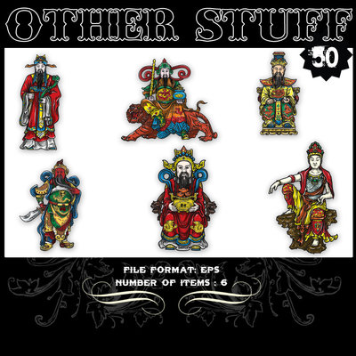 Other Stuff 50 - Chinese gods, vector sets featuring a variety of Chinese gods in different poses, for asian themed designs. The files will be available AI and EPS formats.