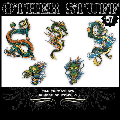 Other Stuff 57 - Japanese dragons, vector set featuring japanese dragons in different poses, drawn in a traditional style. The file will be available AI and EPS formats.