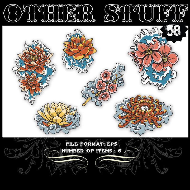 Other Stuff 58 - Japanese flowers, vector set featuring a variety of japanese flower species similar to water lilies. The file will be available AI and EPS formats.