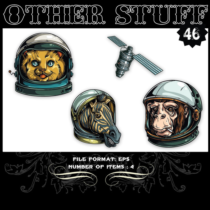 Other Stuff Set 46 - Space, vector set featuring space elements like satellite, space zebra, space monkey and space cat. The file will be available AI and EPS formats.