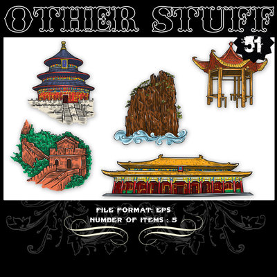 Other Stuff Set 51 - Chinese monuments, vector sets featuring a variety of Chinese monuments, temples, places of prayer. Other Stuff Set 51 - Chinese monuments