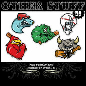 Other Stuff Set 59 - Sports mascots, vector set featuring eagle, dog, bear, baseball bat, baseball ball, bull and alligator. The file will be available AI and EPS formats.