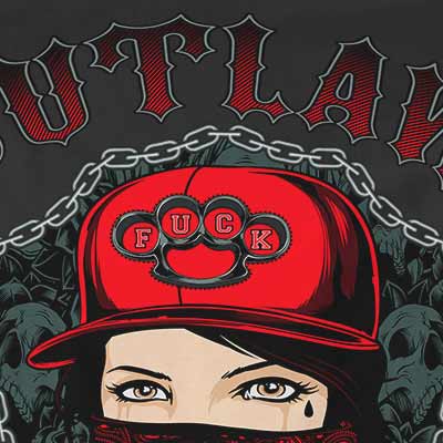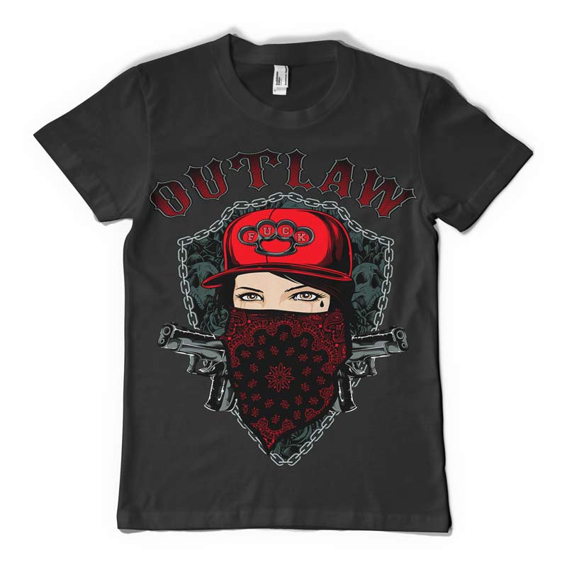 Outlaw t-shirt design features a detailed screen print of gangsta girl now available for Adobe Illustrator, Adobe Photoshop and Corel Draw and can be used for digital printing and screenprinting .