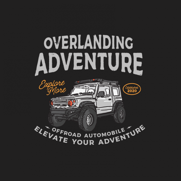 This design “ overlanding adventure” is made in Adobe Ilustrator is ready for print.