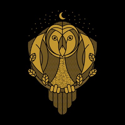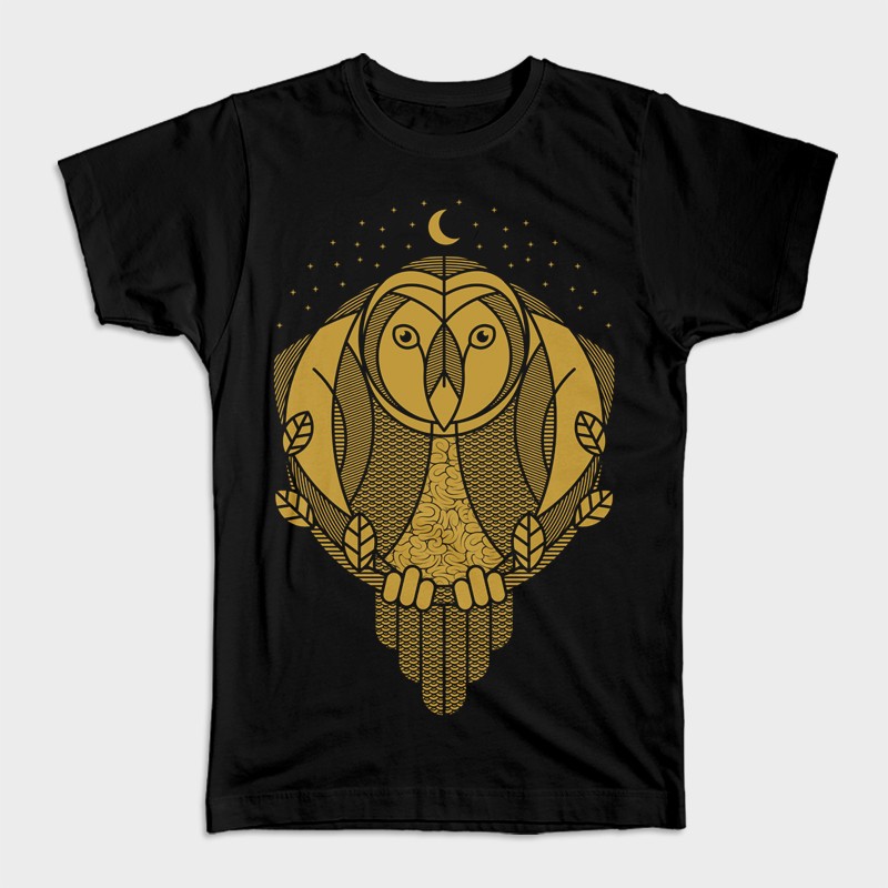 T-shirt design featuring a night owl. The file available is suitable for Adobe Illustrator and can be used for digital printing and screenprinting.