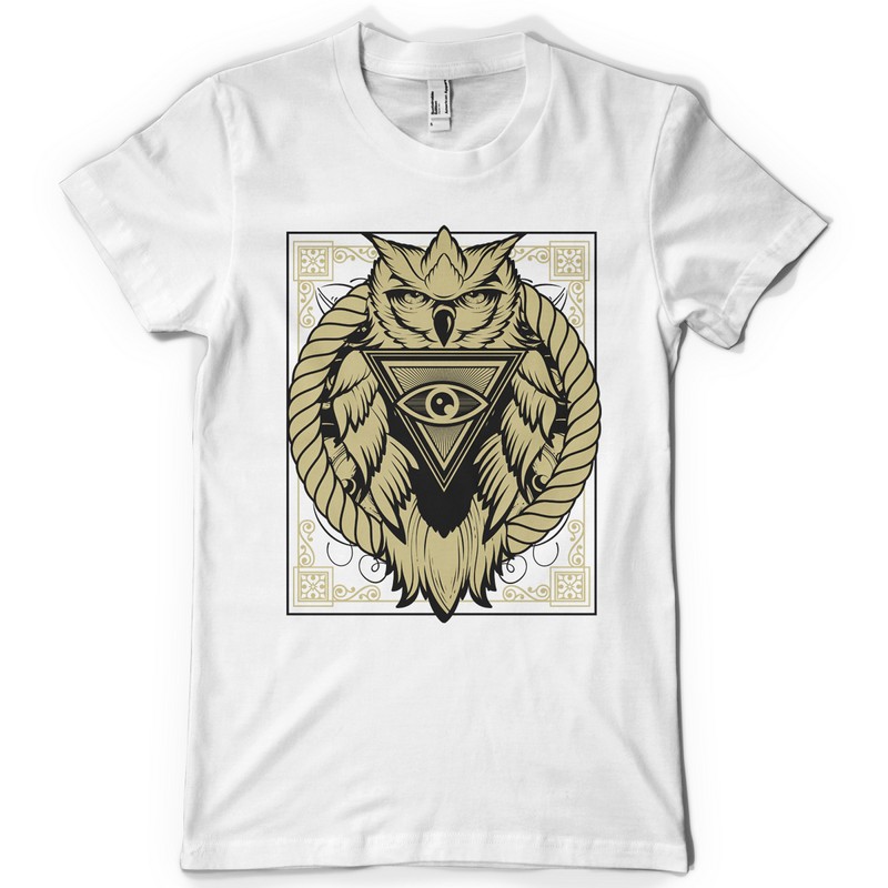 Owl pyramid printed t-shirt features a detailed screen print of illuminati owl now available in EPS format file and can be used for digital printing and screenprinting . Ready to print or use in anything you want.