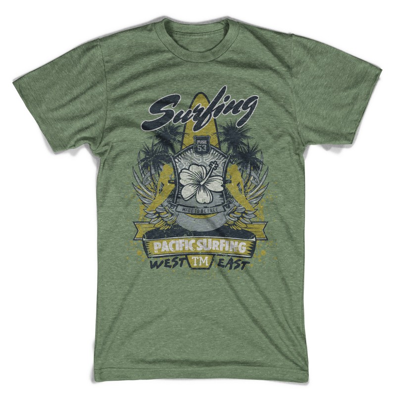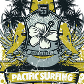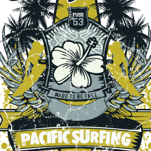 Digital design featuring detailed surfboard and the traditional hibiscus flower. Pacific Surfing template is available in vector format and can be used for digital printing and screenprinting. The file will be available for Adobe Illustrator, Adobe Photoshop and Corel Draw.