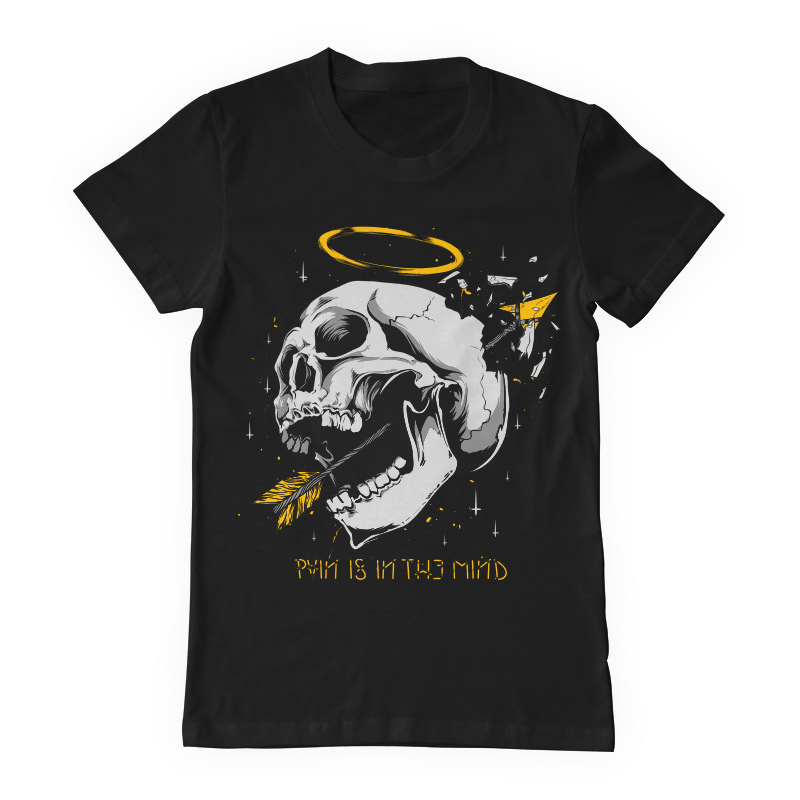 "Pain is in the mind" design is available in high quality files, such as Ai,EPS, PDF and PNG. Vector files are organized on separate layers and all elements are editable. Can be used for both digital (DTG) and screenprinting.