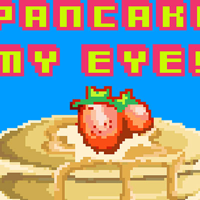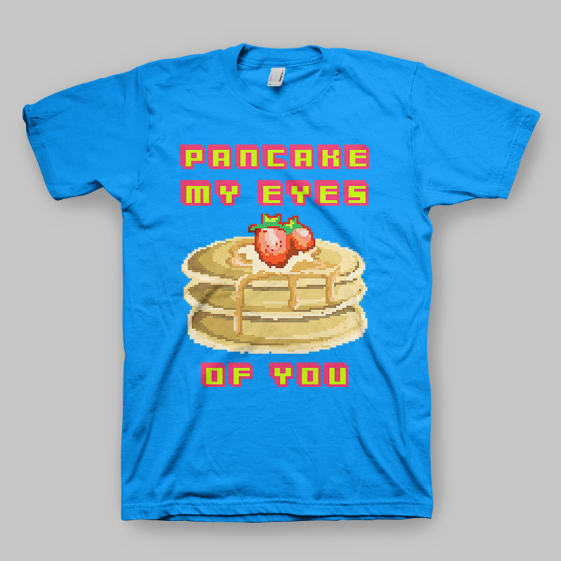 Pancake my eyes of you pixel art food pun. Inspired from the retro video game pixel art mixed with funny quotes and pancake cartoon illustration. Made with pixel art illustration.