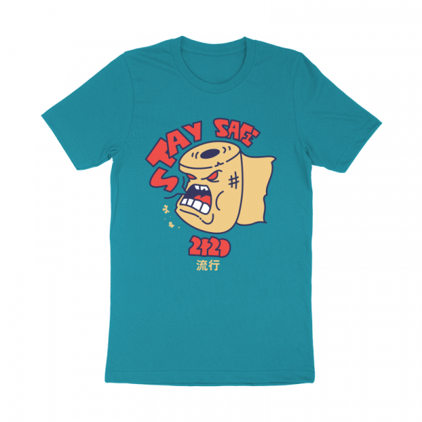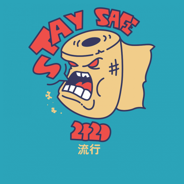 "Pandemic" T-shirt design featuring a cartoon style toilet paper. The files available are suitable for Adobe Illustrator and Adobe Photoshop and can be used for digital printing and screen-printing.