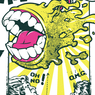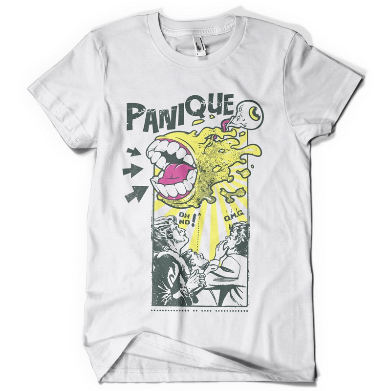 Panique graphic design template in vector format, featuring detailed scary creature now available for Adobe Illustrator, Adobe Photoshop and Corel Draw and can be used for digital printing and screenprinting .