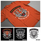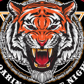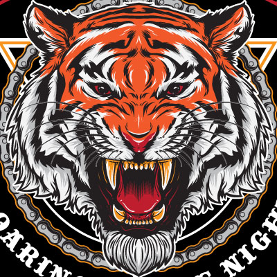 An illustration of an angry Tiger head with, motorcycle chain, and some ornaments.