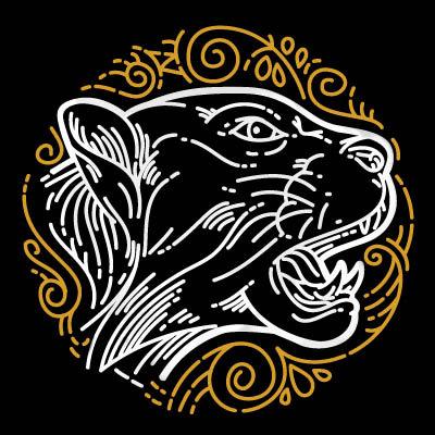 An illustration of a Panther head. Suitable for your biker community, clothing line store, or event. Easy to replace the text and colors. ZIP Feautures contain 1 EPS 10 1 Ai 1 PSD Size 14'x16' CMYK Color mode Layered Editable text