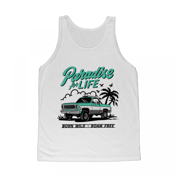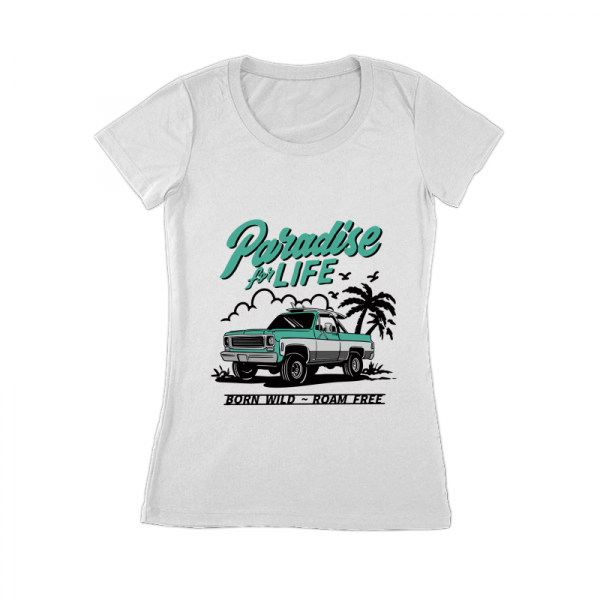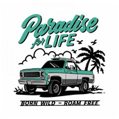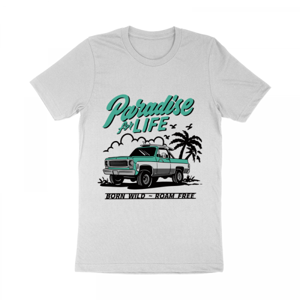 This design “ paradise for life ” is made in Adobe Ilustrator is ready for print.