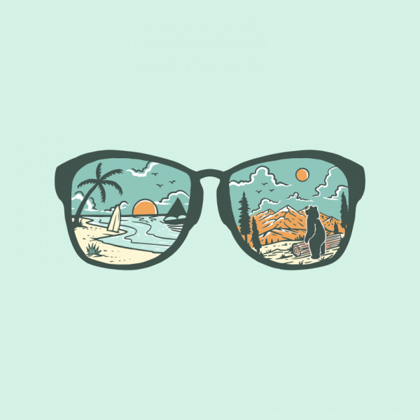 Paradise Glasses is a vintage illustration that is suitable for t-shirts, jackets, or merchandise with the theme of summer, travel, vacation, holiday, beach, tropical, sea, nature, ocean, sand, sun, paradise, tourism, island, landscape.