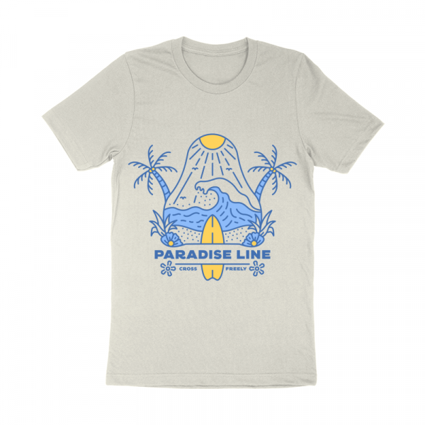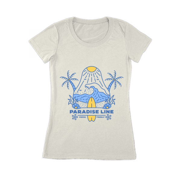 Paradise Line 2 is a monoline illustration that is suitable for apparel or merchandise about summer, vacation, holiday, beach, surfing, surfboard, waves, surfer, sport, travel, sea, tropical, good vibes, surf, hawaii.