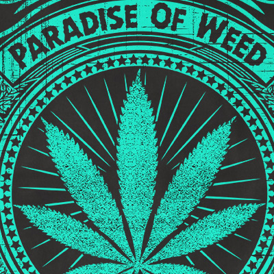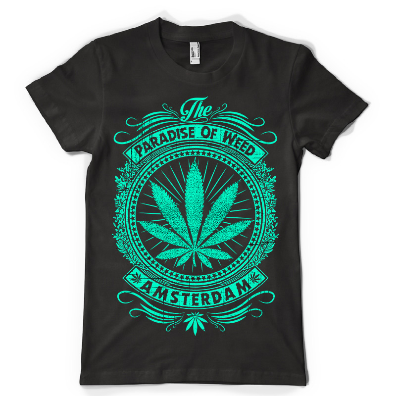 Paradise t-shirt design features a Weed Paradise detailed screen print now available for Adobe Illustrator, Adobe Photoshop and Corel Draw and can be used for digital printing and screenprinting