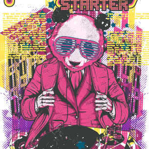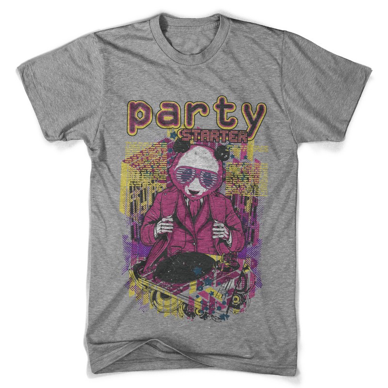 Party starter graphic design template in vector format, featuring detailed gentleman panda prepared for party now available for Adobe Illustrator, Adobe Photoshop and Corel Draw and can be used for digital printing and screenprinting .