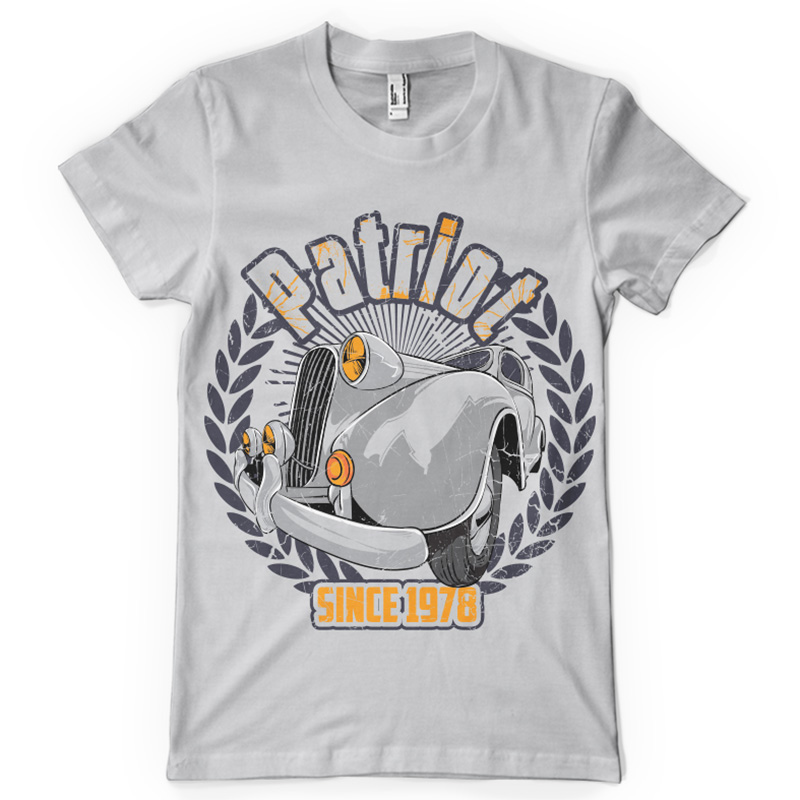 Patriot car printed t-shirt features a detailed screen print of retro car now available for Adobe Illustrator, Adobe Photoshop and Corel Draw and can be used for digital printing and screenprinting . Ready to print or use in anything you want.