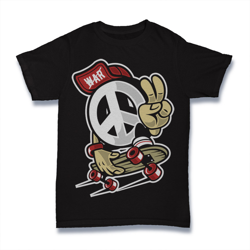 Peace Cartoon Character style T-shirt design template , The files are AI, CDR, PSD separated Layers. Can be used for digital printing and screen printing.