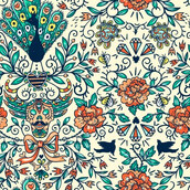 Peacock and diamonds pattern