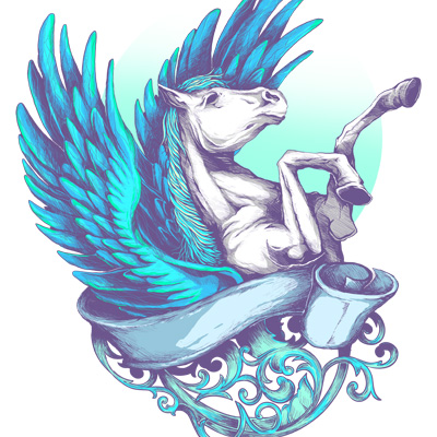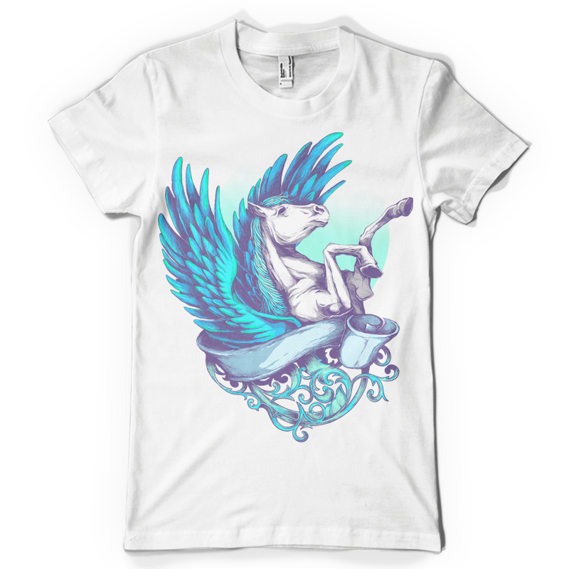 "Pegasus" is an illustration of a winged-horse known as "Pegasus" in Greek Mythology. The file contains a PSD file which separates each element in the design and is ready to print. This design is 300dpi and has a dimension of 17" x 24".
