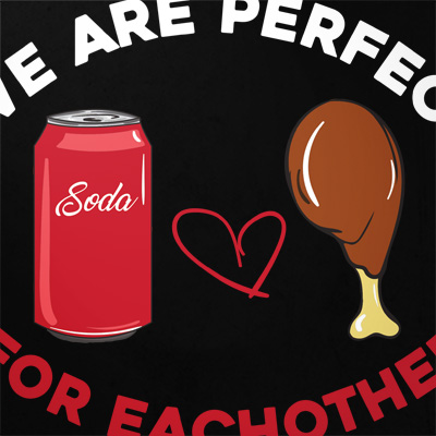 Perfect couple is an illustration made in Adobe Illustrator,which features literally the perfect couple in the world,a soda and a roasted chicken leg.It can be used on digital printing,screen printing and T-shirt design and it is available in PSD and EPS format file.Bon apetit!
