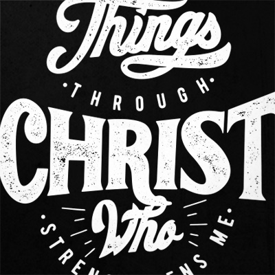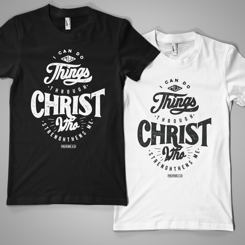 "Philipians" T-shirt design featuring typography style religious quote, with distressed details. The files available are suitable for Adobe Illustrator and Adobe Photoshop and can be used for digital printing and screenprinting.