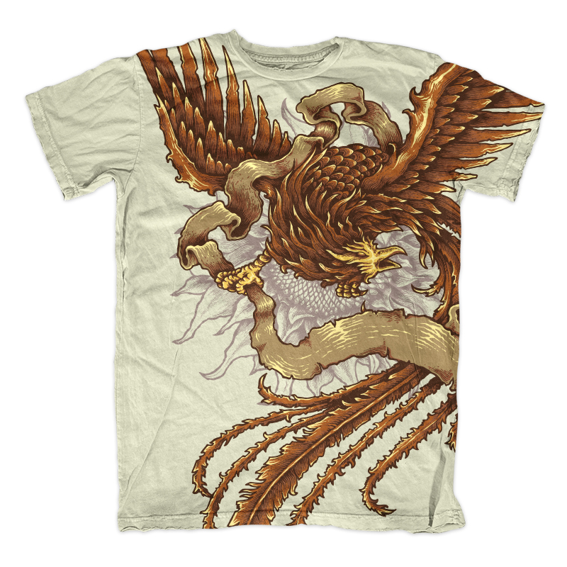 Illustration of phoenix bird with beatiful wings and tail. Ready to print on t-shirt.