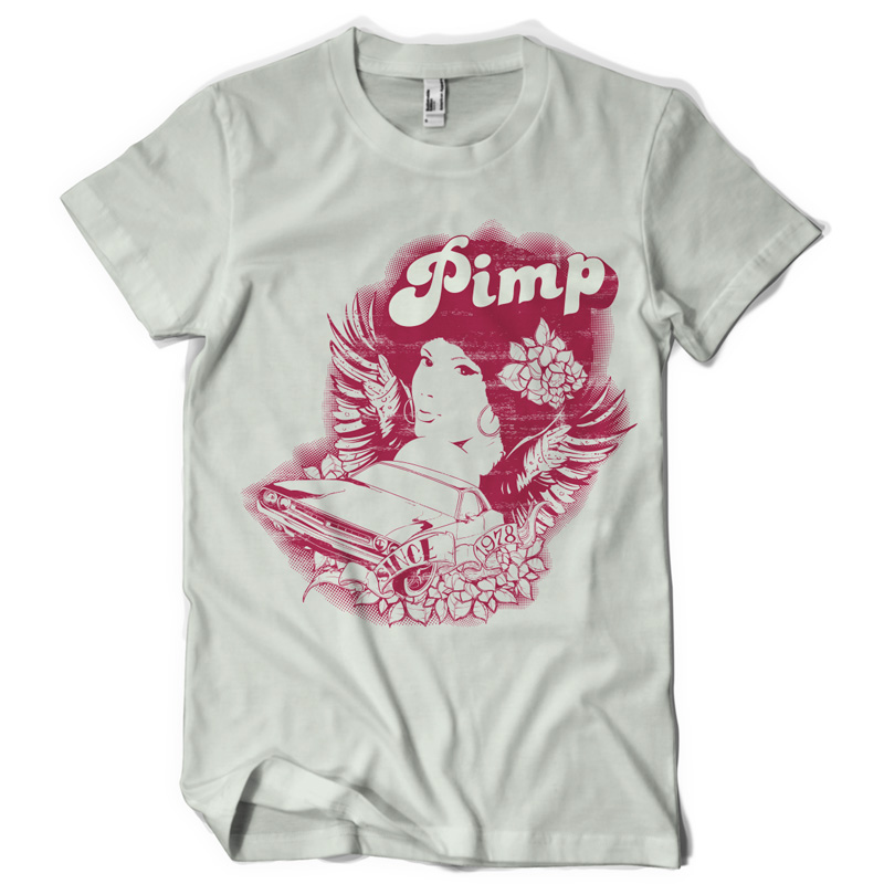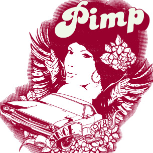 Pimp digital template in vector format, featuring detailed sexy girl now available for Adobe Illustrator, Adobe Photoshop and Corel Draw and can be used for digital printing and screenprinting .