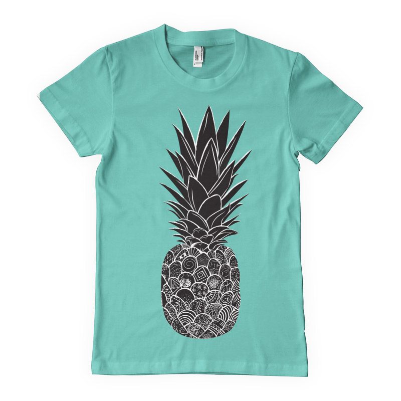 Pineapple T-Shirt Design. Digital illustration of featuring detailed flowers inside a pineapple.The colors are changeable. The source file is available in AI, EPS, PNG, PSD and SVG format.