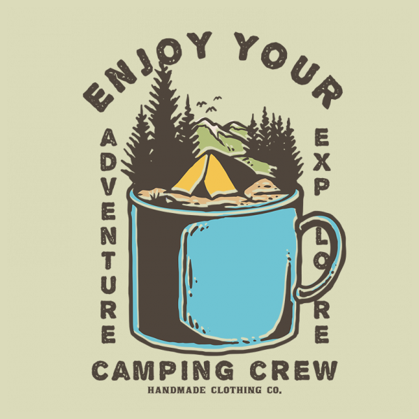 Summer camping outdoor adventure mountain vector illustration. Ready to print on t-shirt.