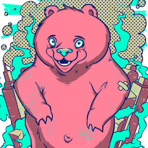 Pink bear graphic design template in vector format, featuring detailed funny bear now available for Adobe Illustrator, Adobe Photoshop and Corel Draw and can be used for digital printing and screenprinting .