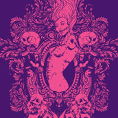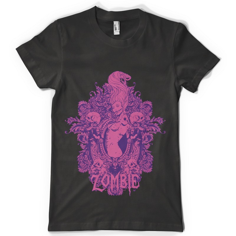 Pink zombie template in vector format, featuring detailed sexy zombie girl now available for Adobe Illustrator, Adobe Photoshop and Corel Draw and can be used for digital printing and screenprinting .