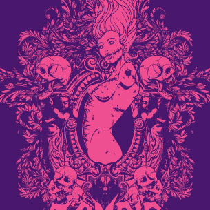 Framed zombie woman on a flourish background